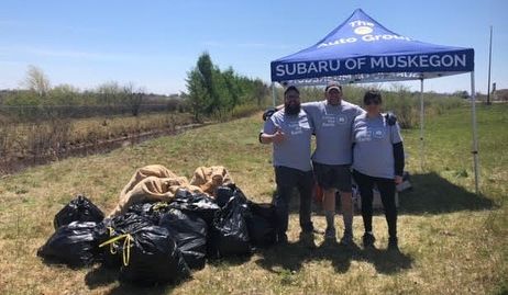 On May 2, Subaru of Muskegon teamed up with a group from Muskegon County Litter Clean-up to collect 154 pounds of trash around the Lakeshore Mall. The property is full of gullies and ponds that are home to numerous geese, ducks, and other wildlife.
