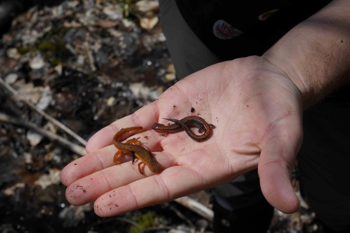 A Red-backed Salamander (Plethodon cinereus) and an Eastern Newt (Notophthalmus viridescens) © Emily Anderson