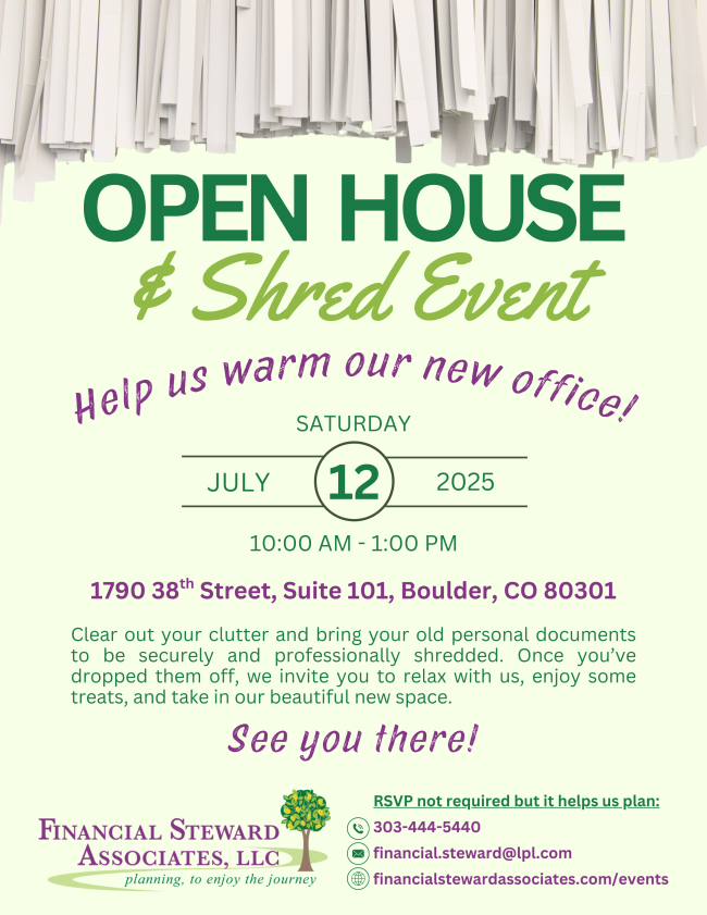 Join us in our new office from 10:00 a.m. to 1:00 p.m. MDT for our annual Open House and Shred Event.