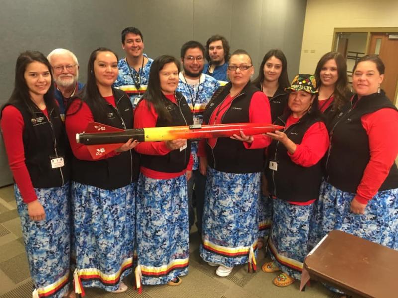– On April 24, 2019, the Lac Courte Oreilles Ojibwa Community College (LCOOCC) Ishpiming Bemisejig (We are all flying high together) Rocket Team traveled to Carthage College in Kenosha, WI to compete in the Wisconsin Space Grant Consortium’s First Nations Launch High Powered Rocketry Competition. The rocket team has been working on their rocket for the 2019 competition since January with the challenge of constructing a high powered rocket equipped with a video camera(s); teams must then create a video montage of their experience during construction, prep, flight, and recovery. During the last few months, they have had to complete preliminary design, critical design, and flight readiness technical reports, OpenRocket simulations, virtual presentations and building of the actual rocket.