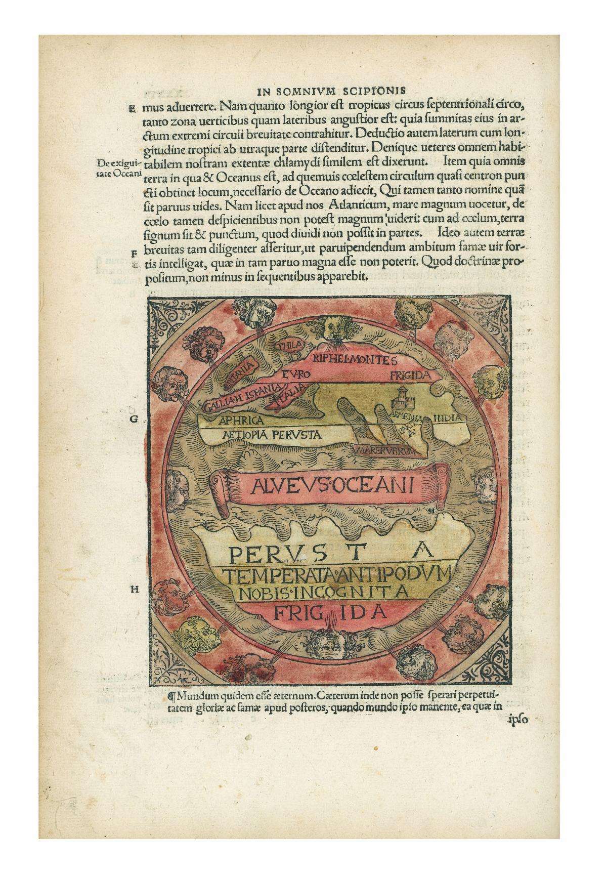 An important edition and exceptional copy of a work that influenced geographic and cosmological thinking in the Age of Discovery. This edition contains the largest iteration of Macrobius’s world, and it is here in full, original color; this is the first example of the map thus colored we have encountered... Full Description or to Order.