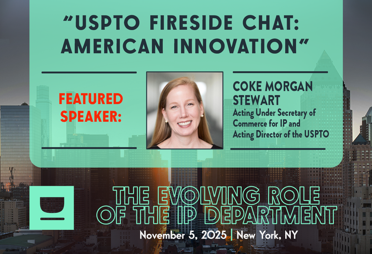 Just Announced! Acting Under Secretary of Commerce for IP and Acting Director of the USPTO, Coke Morgan Stewart, joins IP Counsel Cafe for a Fireside Chat in New York City on November 5, 2025. Stay connected, stay ahead! In these uncertain and fast-changing times, IP Counsel must be nimble and ready to evolve in order to support the business and increase value. Find out how IP departments are tackling the numerous challenges in today's business and legal landscape. Join the IP Counsel Cafe Fall Meeting for a day of benchmarking, practical in-house perspectives, and networking. RSVP Now!