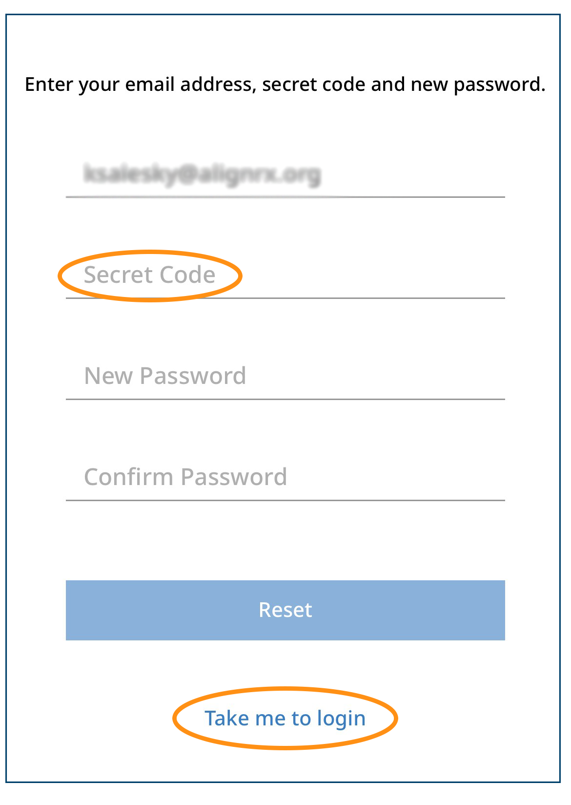 On the next screen in the AlignRx app, paste the secret code. Then, create your new password.
