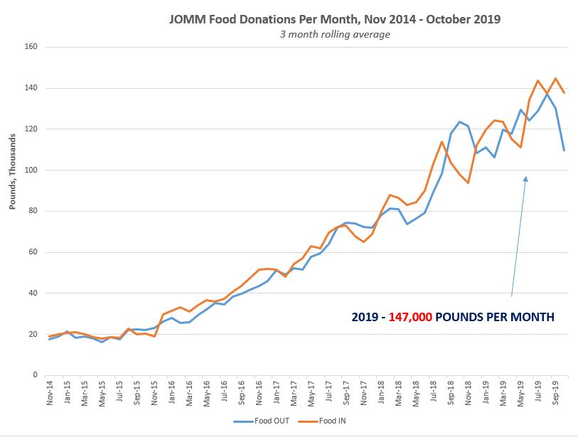 Since our founding in 2008 in the basement of a church, we have been blessed with abundant donations of food. This is excess food that would be thrown away and is not wanted. How wonderful that it can be passed along to people who can use it!