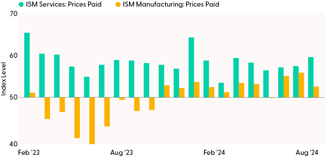 The recent longshoreman strike affected 40 ports to various degrees across the country, and if it had lasted a week, some estimated it would have cost over $2 billion in lost business.1 In a separate dispute, the Boeing machinist strike has lasted three weeks so far, costing the economy over $1 billion and adding to the fragilities of the market. Although only a few days long, the port strike impacted perishable items, according to the American Farm Bureau Federation. These strikes added tension to an already-stressed supply chain, increasing input prices paid by businesses.