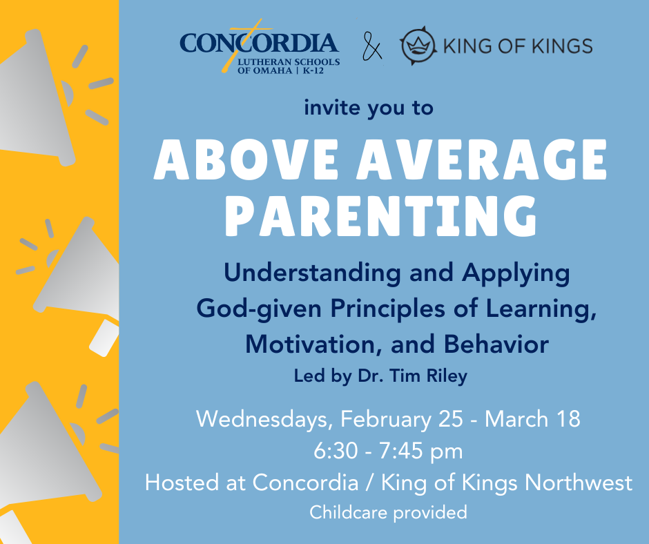 We are thrilled to partner with King of Kings Northwest to host a four-week course: Above Average Parenting: Understanding and Applying God-given Principles of Learning, Motivation, and Behavior. Whether you're looking for better ways to motivate your kids or just want to connect with other parents who "get it," we’d love to see you there.