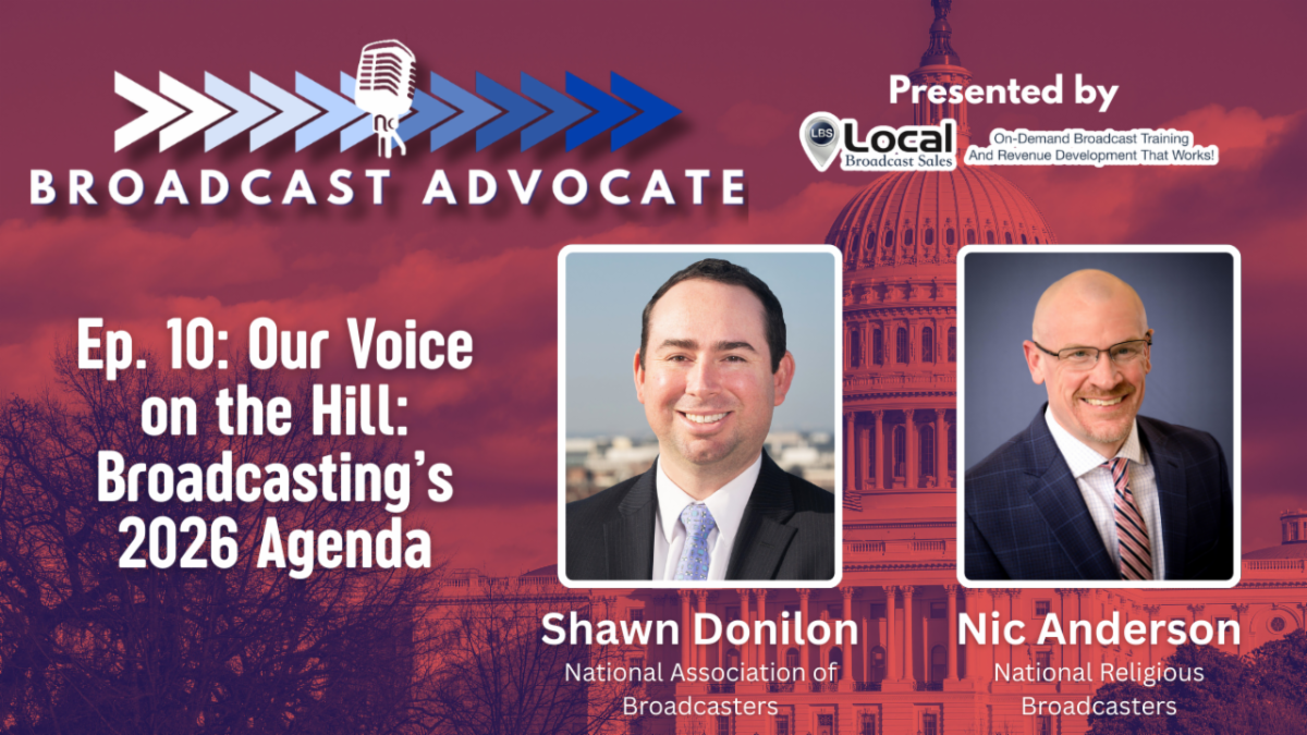 In this episode of Broadcast Advocate, co-host Chris Winkle (Kentucky Broadcasters Assoc.) and Wendy Paulson (Minnesota Broadcasters Assoc.) are joined by National Association of Broadcasters EVP of Government Relations Shawn Donilon, and director of Government Affairs for Salem Media Group and VP of Public Policy for the National Religious Broadcasters Nic Anderson. The group discusses the most pertinent issues to radio and television broadcasters: Ownership, the AM Radio For Every Vehicle Act, NEXTGEN TV, and performance royalties as hundreds of broadcasters from every state are set to advocate for the industry in Washington, DC.