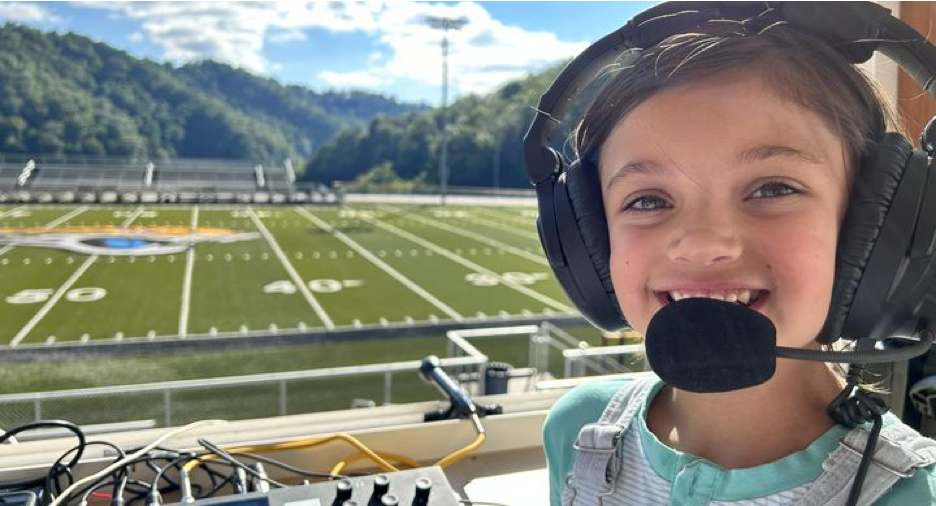 Pictured above is Ellie testing out the equipment prior to Floyd Central's first home football game of the season on WMDJ.