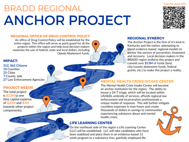The Anchor Project would be a first-of-its-kind facility, combining a mental health crisis intake center, a life learning center, and a regional Office of Drug Control Policy under one roof.