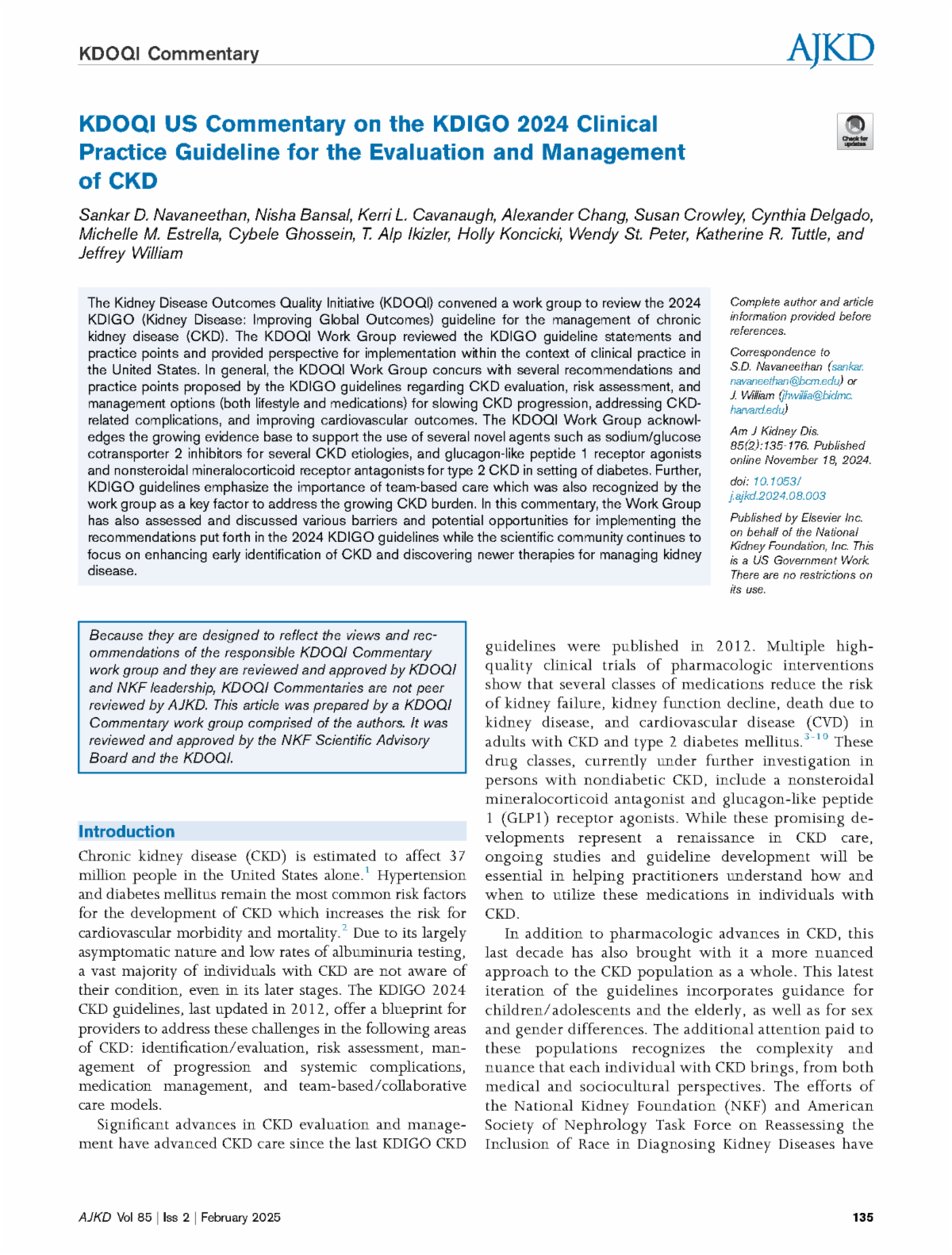 The KDOQI US commentary on the KDIGO 2024 CKD Guideline was published in the February issue of American Journal of Kidney Diseases. This commentary provides a U.S.-focused perspective on the KDIGO recommendations, highlighting their clinical implications, challenges, and opportunities for implementation.