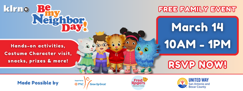 KLRN is your public television station. Every day, our dedicated team brings quality, educational programs and resources to South Central Texas. We do this on-air with specialty programs such as The Making of The American Revolution, online with KLRN Originals available to watch on-demand, and through free family events in our community like Be My Neighbor Day, coming up March 14.