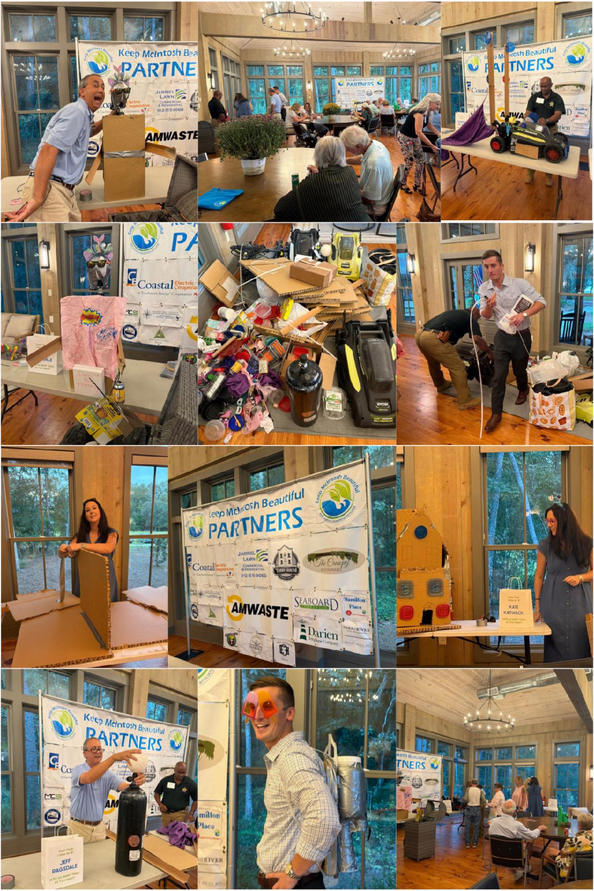 *County Commission Chairman Kate Karwacki: Crafted a full coastal home from corrugated boxes, Tupperware lids, and plenty of duct tape—plus some stylish trash-chic accessories. Realtor skills shine everywhere!