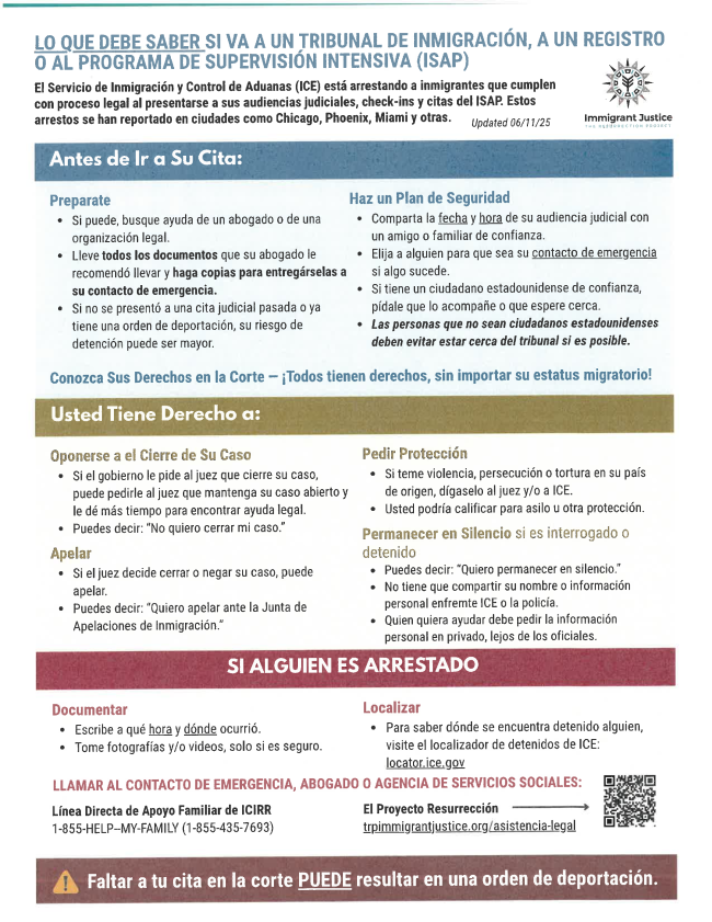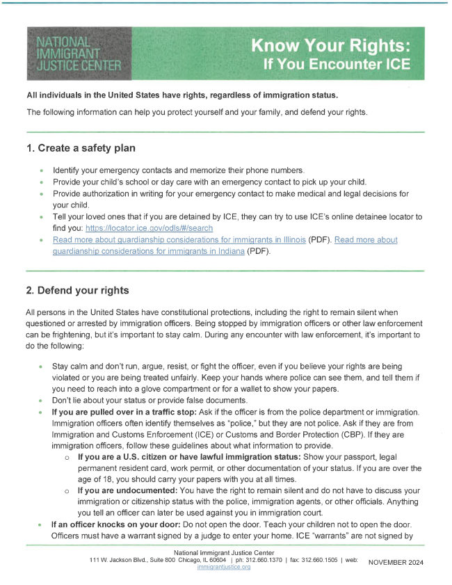 KNOW YOUR RIGHTS - In an immigration emergency or to report an ICE sighting, call the ICIRR Family Support Hotline: 1-855-HELP-MY-FAMILY