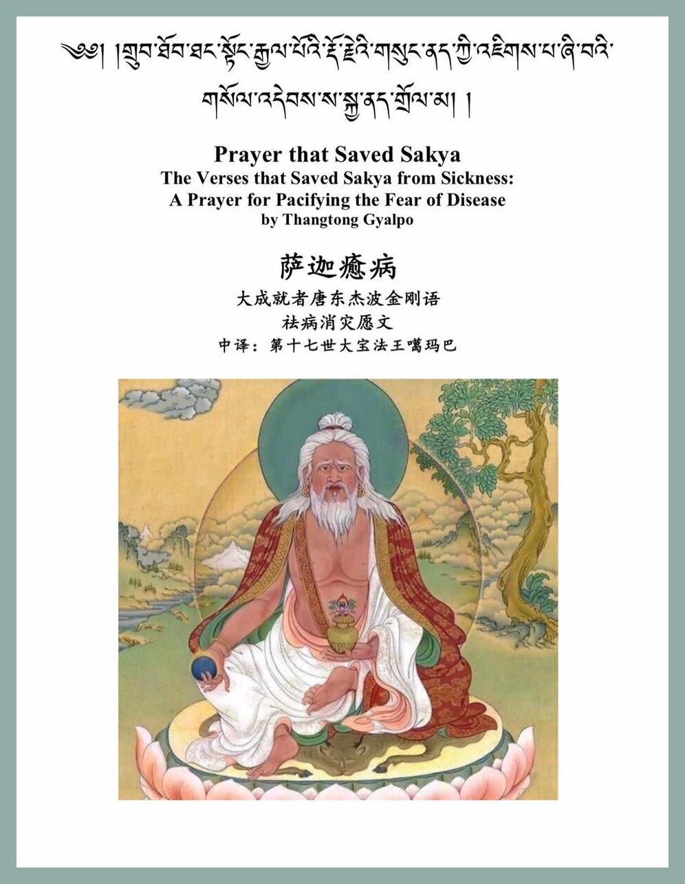 At the conclusion of every practice, before dedications are recited, the lamas will lead us in a recitation of the Sakya Nedrol, the “Prayer that Saved Sakya” (monastery), written by 14th Century Tibetan saint Tangtong Gyalpo.