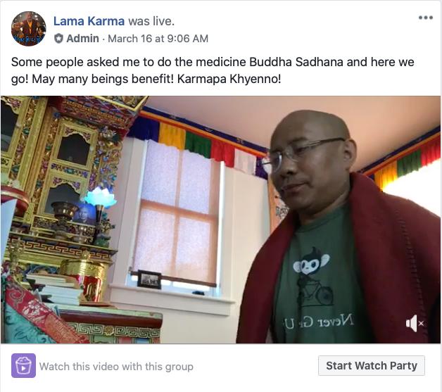 every Thursday from 7 to 8 p.m. Eastern Time, as the KTD Khenpos and Lamas lead us through a chant practice of Chenrezik, Amitabha and Guru Rinpoche.