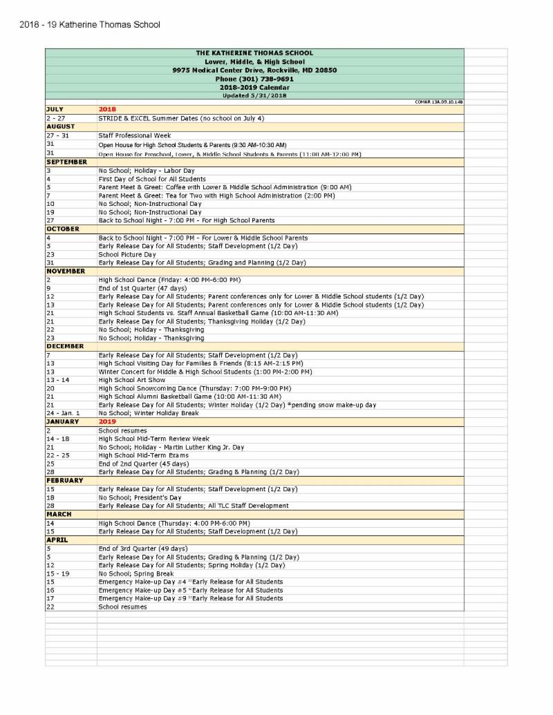 2018-2019 KTS Calendar