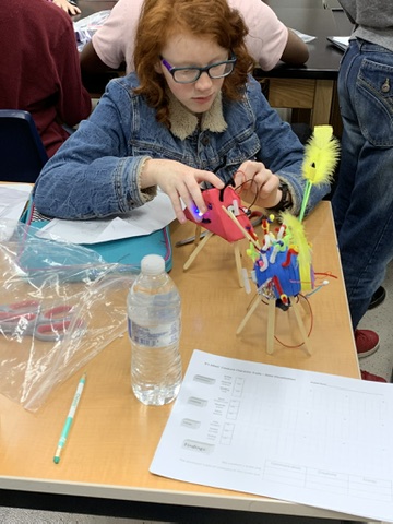with distinct personalities. They spent the week creating the creatures and on the last day the robots danced away at the dance party finale. In addition, in their other classes, the students participated in team building activities, created and shot ping pong balls from catapults, built robot hands, made smores from solar ovens that they built, learned about propaganda and the use of art and technology to promote it, explored the brain and its functions, and so much more!