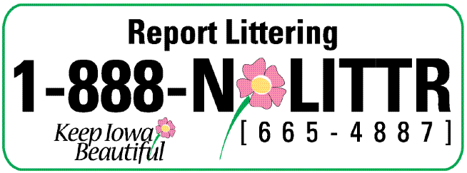 You can help reduce litter in Iowa! Call Keep Iowa Beautiful's No Litter Hotline to report litter thrown from vehicles today.
