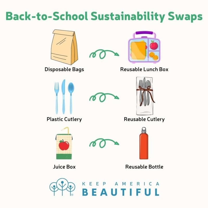 KMB had tons of fun connecting with our community at the recent National Night Out! Plenty of snacks and slogans designed to educate our kiddos about ways to Reduce, Reuse & Recycle! Promoted our annual Georgia's Coast is Not an Ashtray campaign by handing out pocket ashtrays for adults to use while in their cars, boats, anywhere. And the Open Houses were great! Handed out info, recycled pencils and seeds, scholarship applications to rising seniors, and much more... WE HOPE EVERYONE HAS AN AMAZING SCHOOL YEAR! Try these Back-to-School Sustainability Swaps...