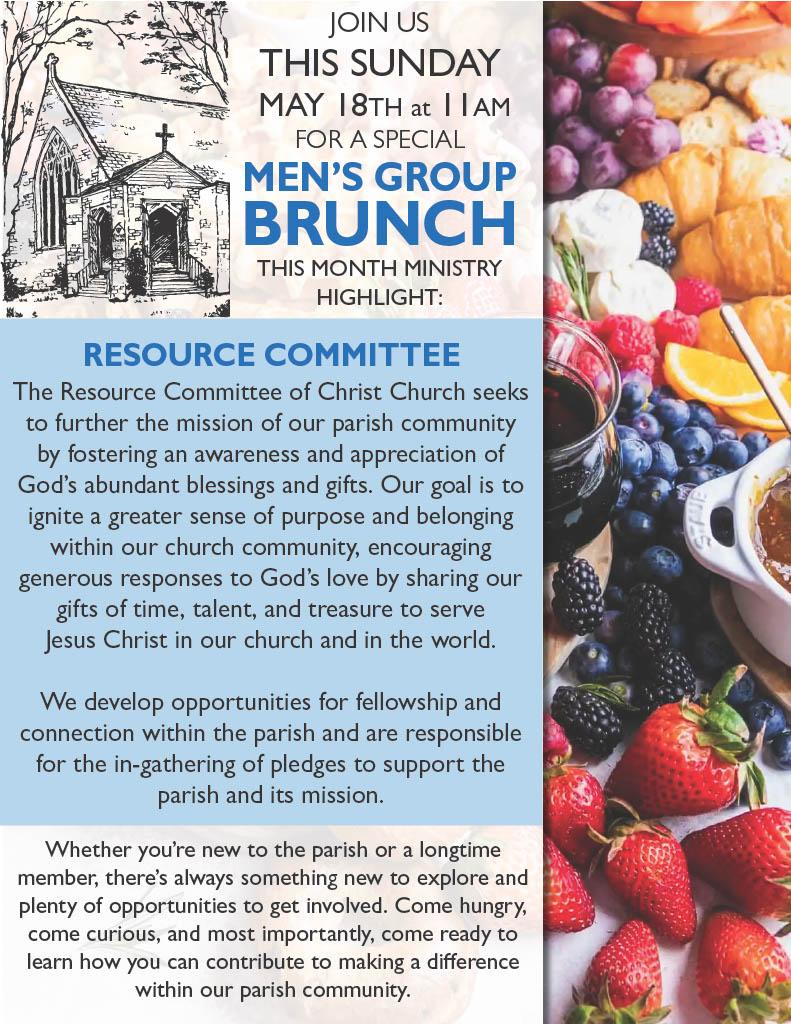Starting June 15, Christ Church will transition to our summer worship schedule. We warmly invite you to join us for our Saturday service of Holy Eucharist at 5pm or Sunday service of Holy Eucharist at 9am.