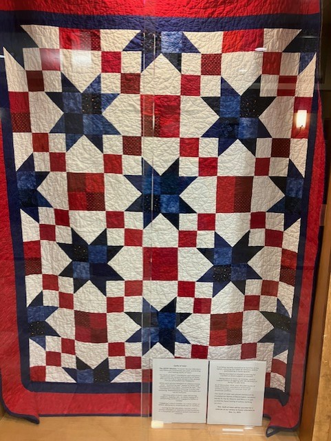 During the Veterans Day service, each veteran receives a red, white, and blue ribbon pin, and all are honored with prayers, speeches, music, and applause. This year’s QOV recipient, a veteran of the Korean War, expressed his gratitude and joked, “I sure could have used that blanket when I was in North Korea.” As the quilt was presented, another veteran in the audience was heard quietly saying, “Now that is just great.”
