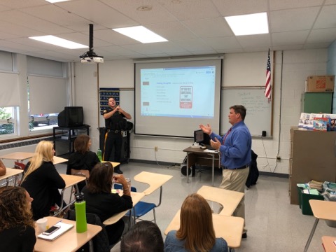 Lieutenant Paul Watkins of the Verona Police Department and Mark Rossi of Verona Public Schools and Verona EMT (above) discuss suspicious activity reporting best practices for designated school personnel.