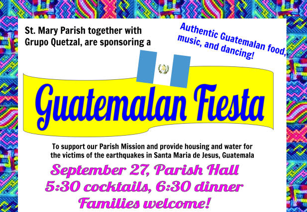 September 27, 5:30PM School Hall To support our friends in Santa Maria de Jesus who are suffering from the recent earthquake