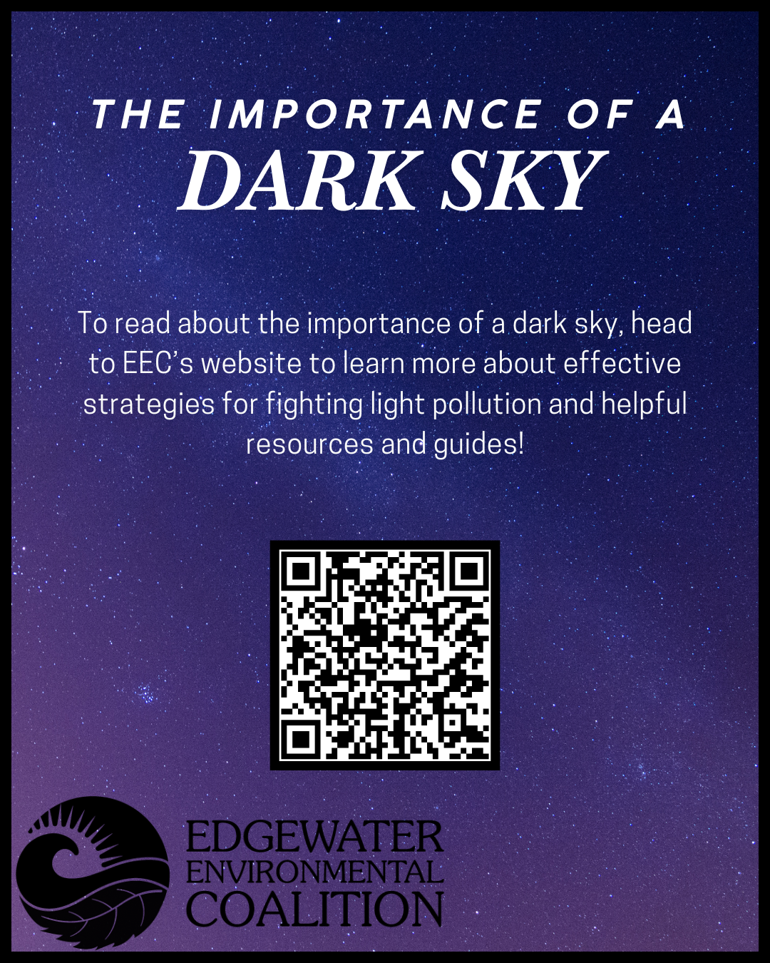 As the days get shorter, you may notice those nighttime lights kicking on earlier and earlier. With these lights coming on, you may have noticed they are brighter than ever. Cities like Chicago have transitioned into using more powerful and brighter bulbs, causing many citizens and scientists alike to notice changes. One of these changes is an increase in light pollution. These new lights affect trees, bird migration, insect populations, and your health. To learn more about strategies for effective and thoughtful lighting practices and the impacts of lighting pollution, head over to the Edgewater Environmental Coalition's new guide on the importance of a dark sky. While there, make sure to check out all the resources and guides on how to get involved. | |