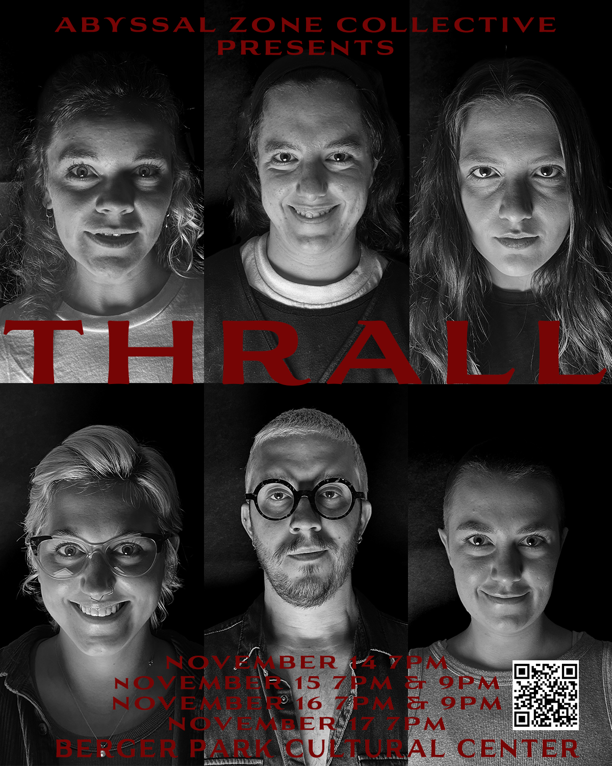 THRALL is an intimate psychological horror piece created by the artists on stage. No gore and no jump scares.