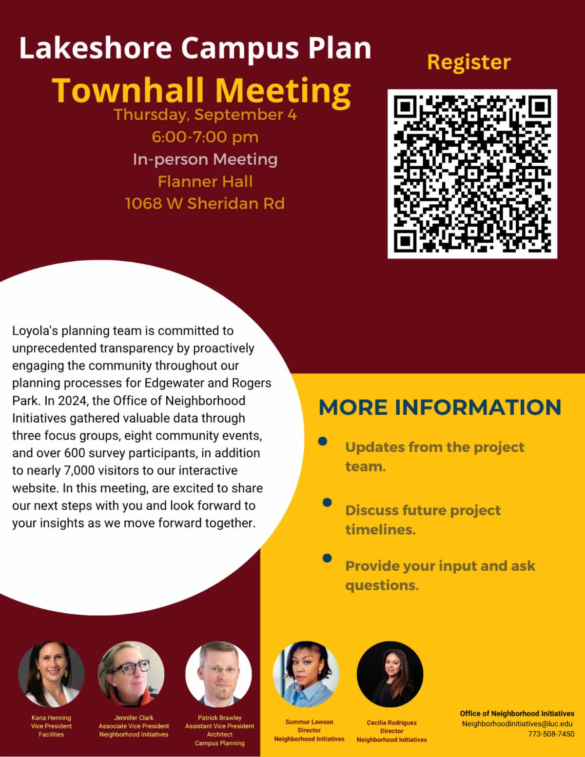 Join Loyola's Office of Neighborhood Initiatives for their campus plan town hall. This meeting is directed to stakeholders in the Roger's Park and Edgewater neighborhoods.