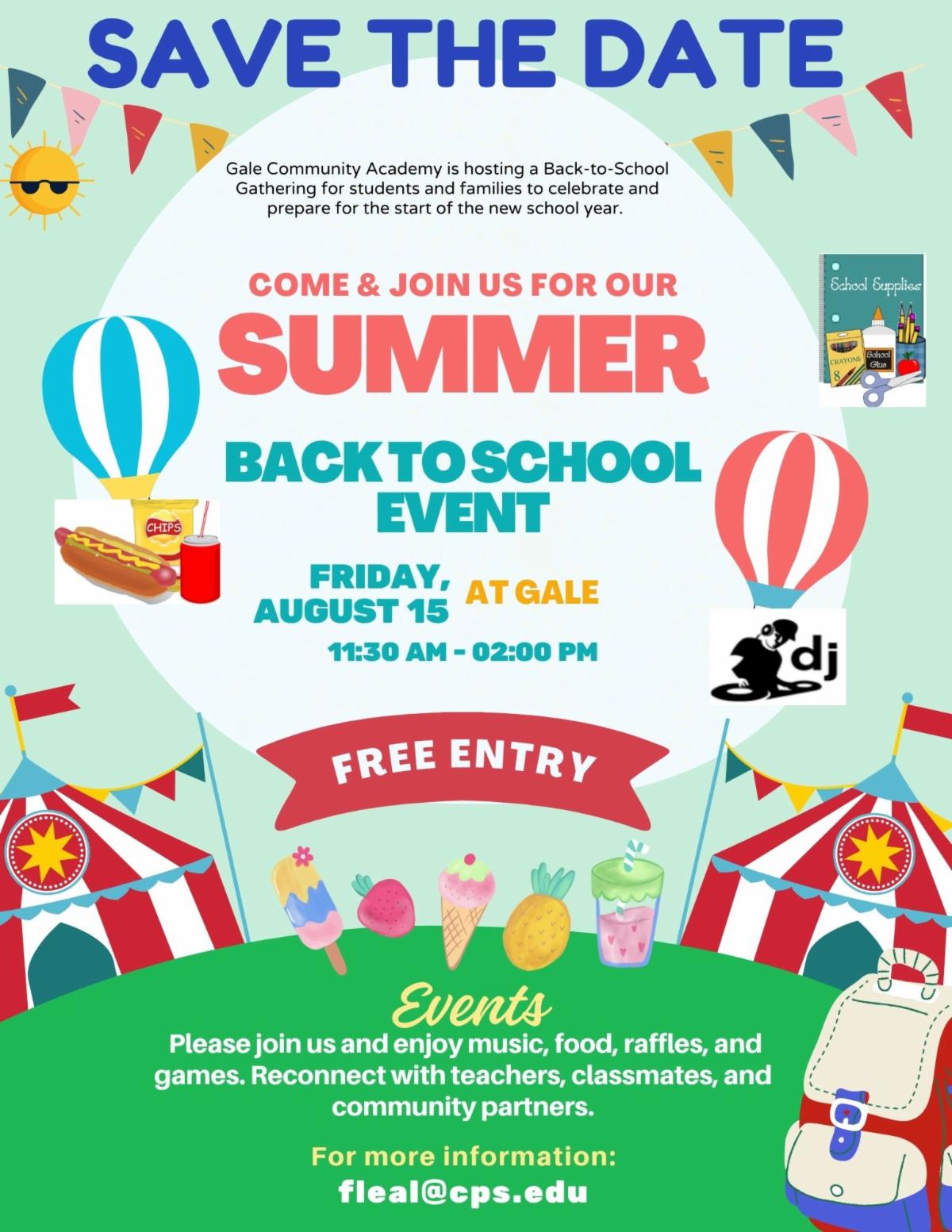 They will also then be having a Back to School event on Friday, August 15th from 11:30am-2:00pm, at the chool.