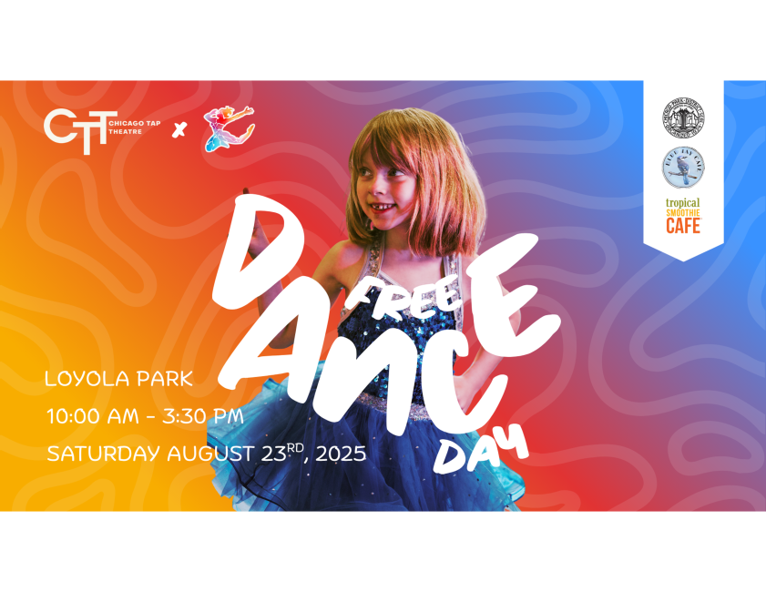 | | RChicago Tap Theatre - Free Dance Day | | Join Chicago Tap Theatre at Loyola Park on Saturday, August 23rd for a free dance day! All ages are welcome. | | |