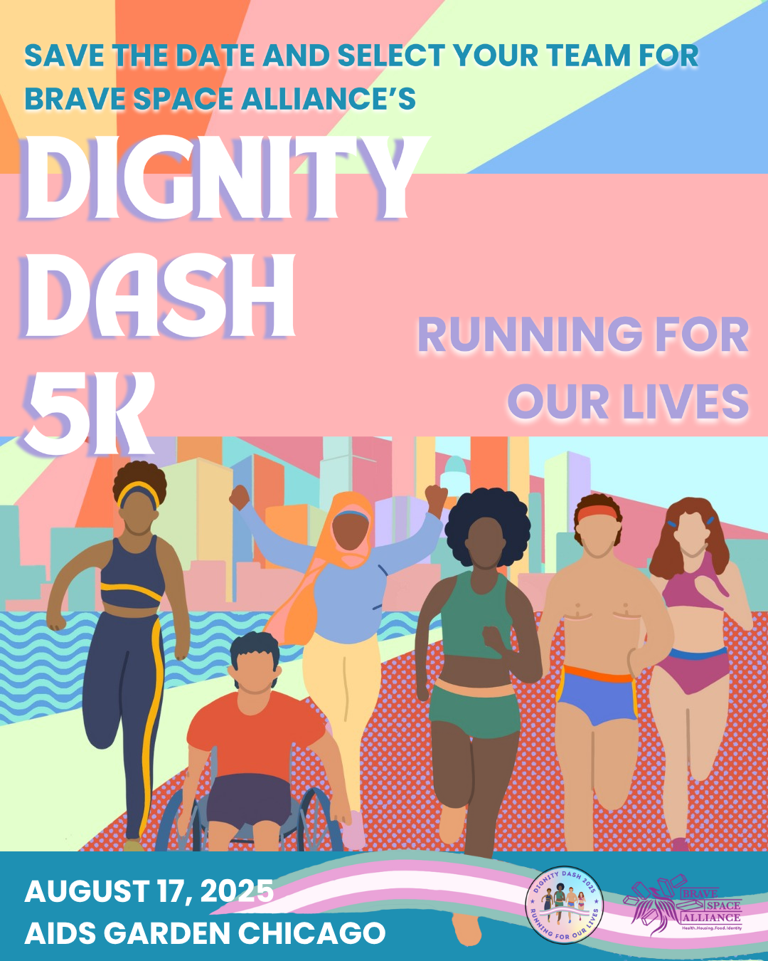 On August 17th, Brave Space Alliance is hosting The Dignity Dash: “Running for Our Lives” 5K at AIDS Garden Chicago—a day of remembrance, resilience, and radical care.