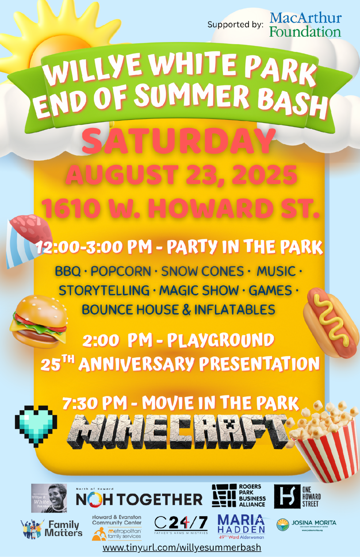 Brought to you by RPBA, Howard Street / Jarvis Square Special Service Area #19, Chicago Park District, Howard & Evanston Community Center, the 49th Ward, Family Matters, North of Howard Together, Father Arms Ministry and the support from the John D. and Catherine T. MacArthur Foundation.