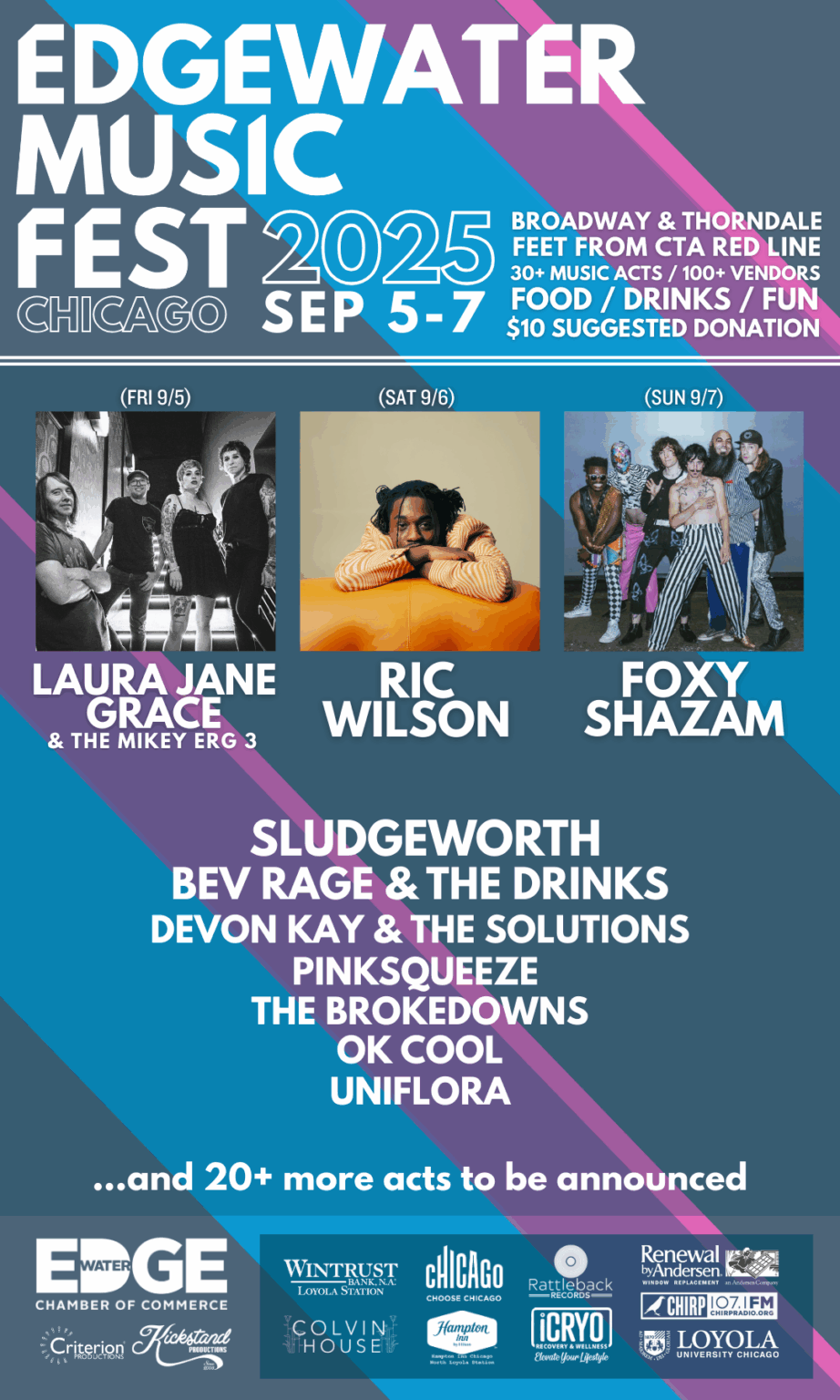 You can join your neighbors for free, family and pet-friendly performances every Wednesday evening through August 20, 2025 from 6:00 - 8:00 p.m. in the beautiful garden behind the Edgewater Historical Society Museum at 5358 N. Ashland Ave. Evenings of free musical entertainment by local musicians, and chances to visit with neighbors and make new friends.