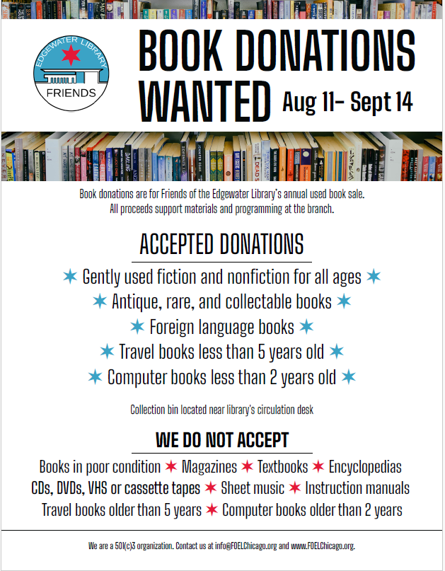 | | Friends of the Edgewater Library Taking Book Donations | | |