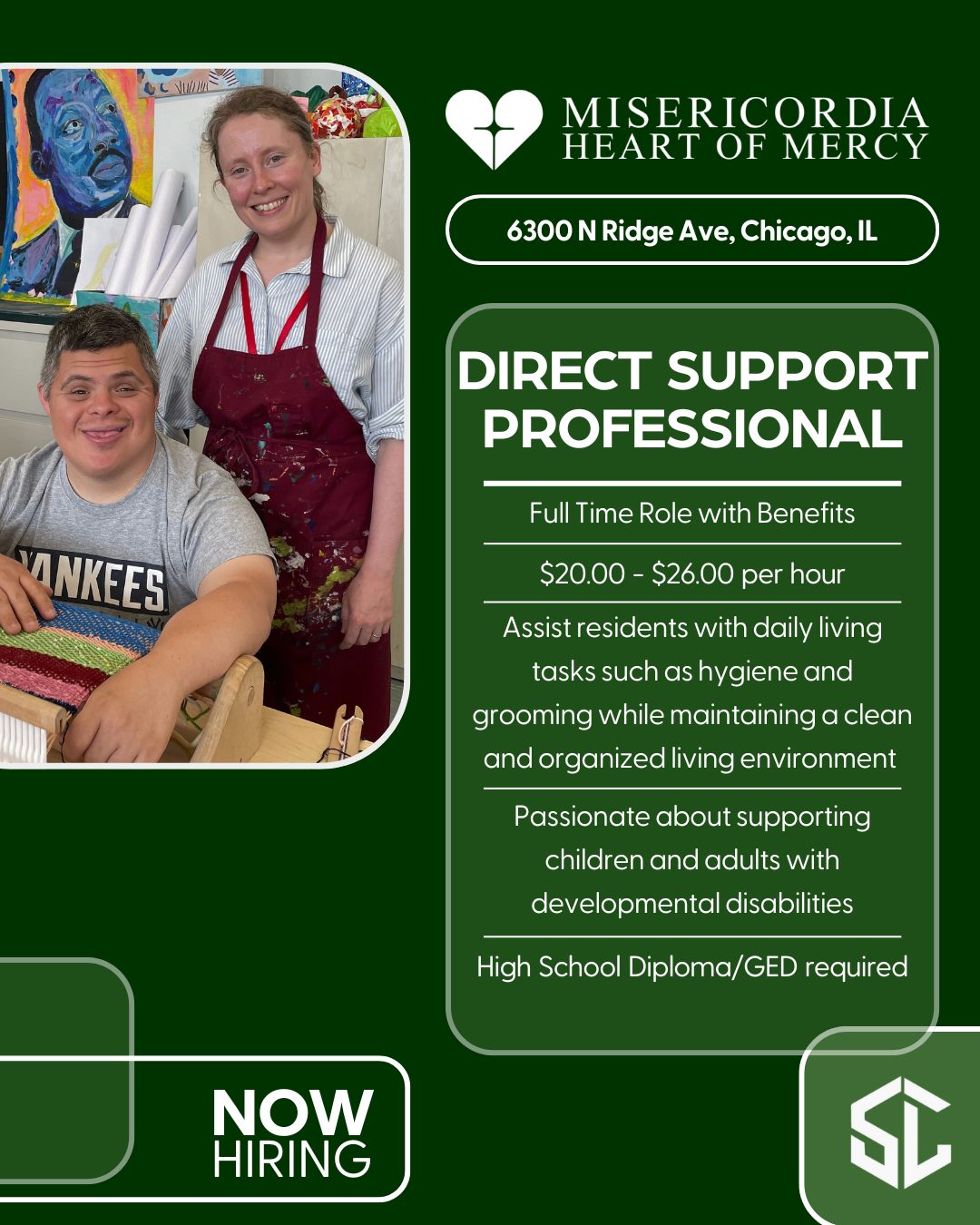 | | Compassionate caretakers wanted! Join Misericordia, Heart of Mercy and be part of a community where every day is about connection and empowerment. As a Direct Support Professional, you’ll work with residents with disabilities, helping them achieve goals and thrive. If you’re seeking purpose-filled work, click here to learn more and get started. | | |