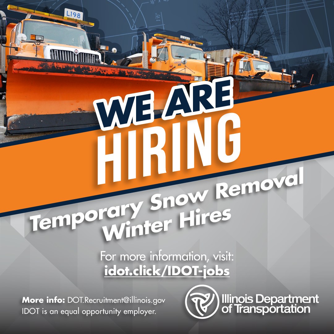 It’s that time again, Illinois! IDOT is hiring 1,600+ temporary Winter Highway Maintainers across the state for the 2025–2026 snow and ice season. Help maintain and repair roads, bridges, and more — and keep Illinois moving safely this winter.