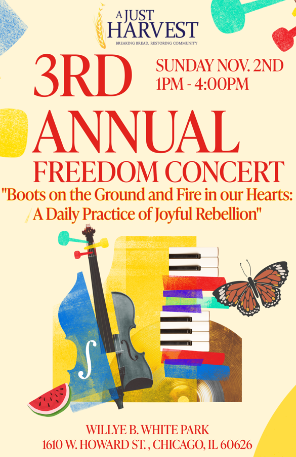 This Sunday, A Just Harvest is hosting its 3rd annual Freedom Concert! This free event is open and accessible to all neighbors seeking to celebrate community. Guests will enjoy a celebration of music that showcases the richness of our local community, while learning about the work of A Just Harvest.