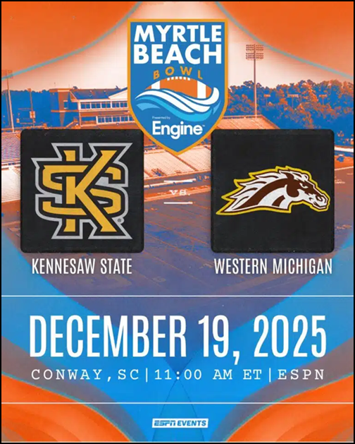 >>• The 2025 Myrtle Beach Bowl will see a matchup of two conference champions as CUSA Champion Kennesaw State will face the MAC Champion in Western Michigan.