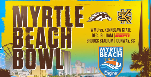>>Kennesaw State will make program history on Friday, Dec. 19, when the Owls line up for their first-ever bowl appearance against MAC champion Western Michigan in the Myrtle Beach Bowl. Kickoff is set for 11 a.m. on the campus of Coastal Carolina at Brooks Stadium in Conway, SC and will air nationally on ESPN, pairing Conference USA’s surprise champion with one of the hottest teams out of the Mid-American Conference.