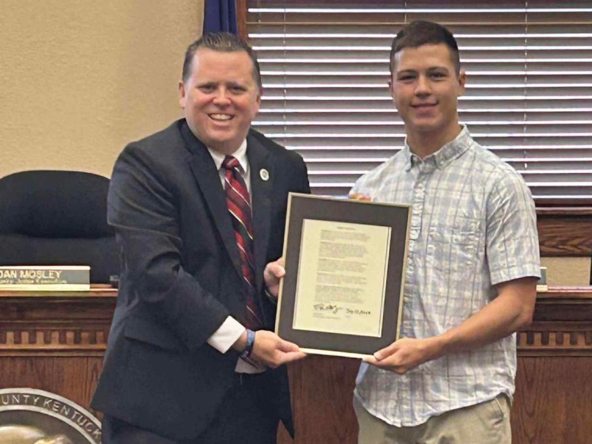 | | Webster County Judge/Executive Steve Henry spoke during the County Forum on Economies and Workers at the NACo annual conference. | | Harlan County Judge/Executive and KACo President Dan Mosley was interviewed at the NACo annual conference about opioid recovery efforts. | | Warren County Attorney Amy Chandler and Menifee County Judge/Executive Rick Stiltner shook hands with Boone County Judge/Executive Gary Moore, who chaired the inaugural meeting of the Midsize County Caucus at the NACo annual conference. | | Butler County Magistrate Stevie Givens, Hardin County Sheriff John Ward and Floyd County Circuit Clerk Doug Hall listened to a presentation during the NACo annual conference. | | Carlisle County Judge/Executive Greg Terry, Floyd County Circuit Clerk Doug Hall, Green County PVA Sean Curry and Metcalfe County PVA Michael Welsh attended the NACo annual conference. | | Kentucky delegates at the NACo annual conference cast their vote for NACo's 2nd Vice President. | | Floyd County Judge/Executive Robbie Williams accepts a $420,000 check for the fiscal court from Sen. Scott Madon and Rep. Ashley Tackett Laferty to be used on county roads. | | The Ohio County Detention Center held a reentry and employment class, partnering with the Division of Reentry services through Kentucky Adult Education. The class offers employment readiness, education/training, childcare/family resources and substance abuse programs. | | Owsley County Deputy Clerk Virgie Hacker presents Erik Hubbard with his license plate for his street legal special purpose vehicle. | | McCreary County Executive Assistant/Economic Development Director Joshua Stephens spoke at the local Chamber of Commerce monthly luncheon, discussing collaboration and teamwork. | | McLean County Judge/Executive Curtis Dame and GIS Analyst Jennifer Alvey presented at the Green River Area Development District board meeting. | | Luke Kelly Day has been declared by Harlan County Judge/Executive Dan Mosley. Kelly won two state track and field championships in the 100-meter and 200-meter dashes. | | Stronger Counties. Stronger Kentucky. | | | | |