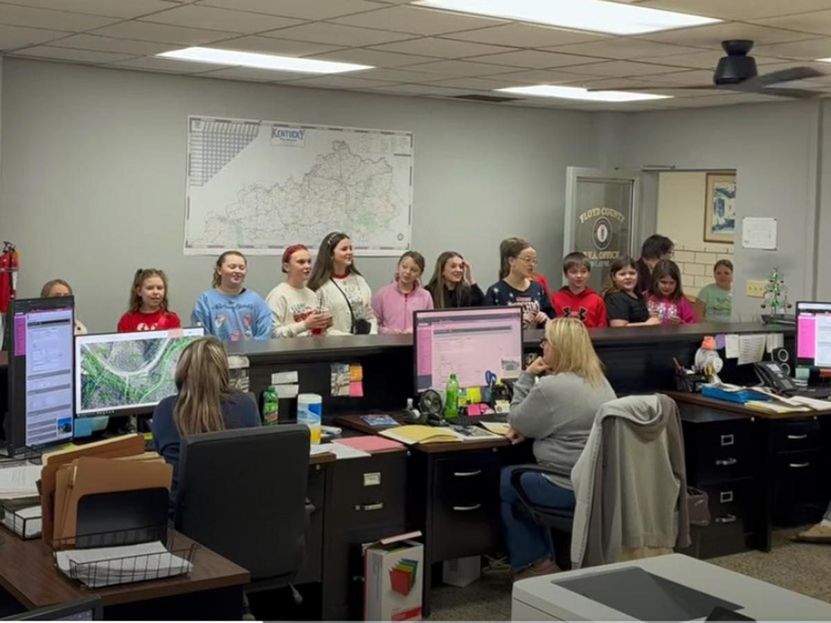 Allen Elementary School chorus members visited the Floyd County PVA Office to sing Christmas carols for staff members.