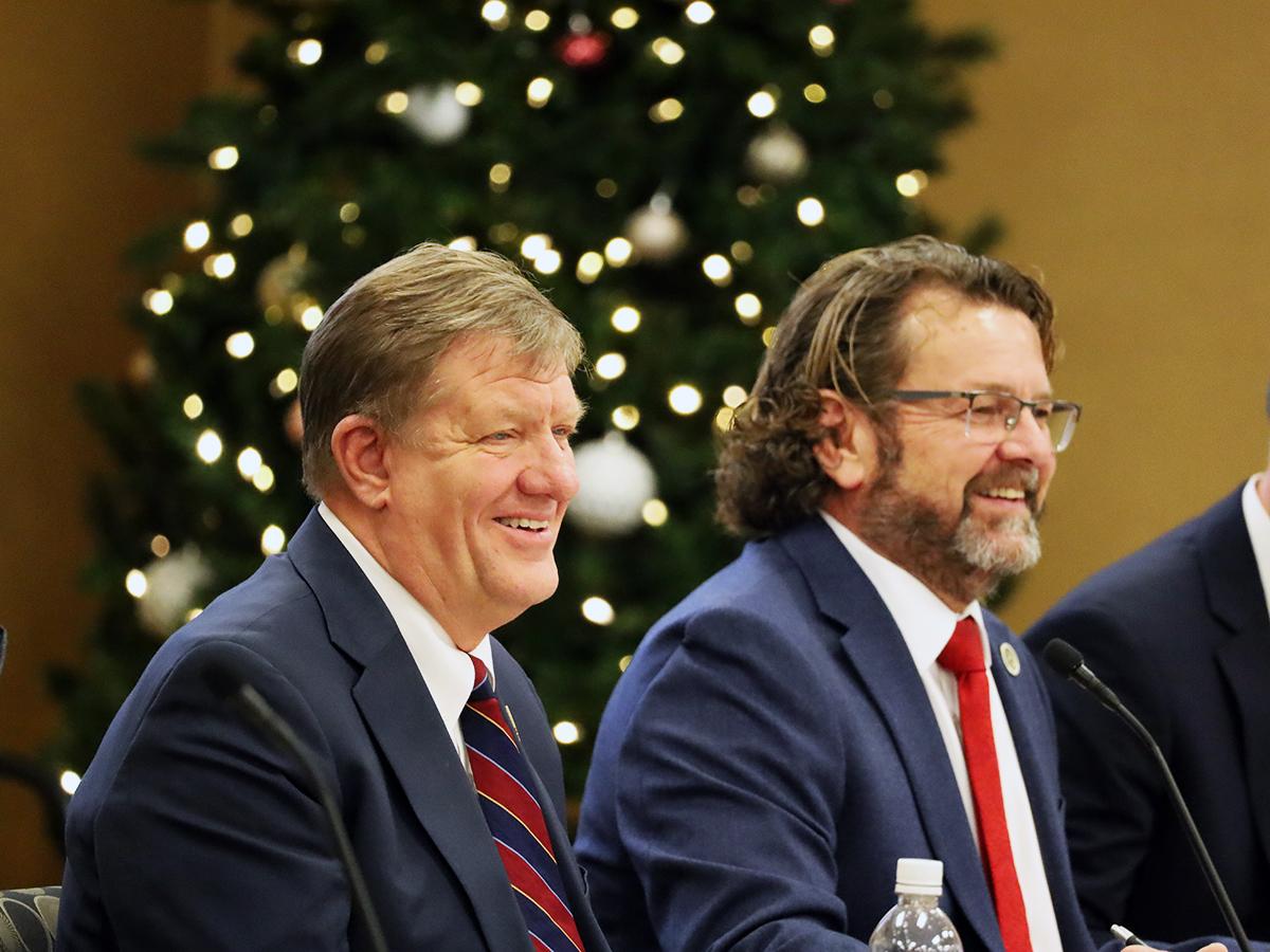 KACo 1st Vice President Sean Curry, right, and Immediate Past President Dan Mosley at the quarterly Board of Directors meeting.