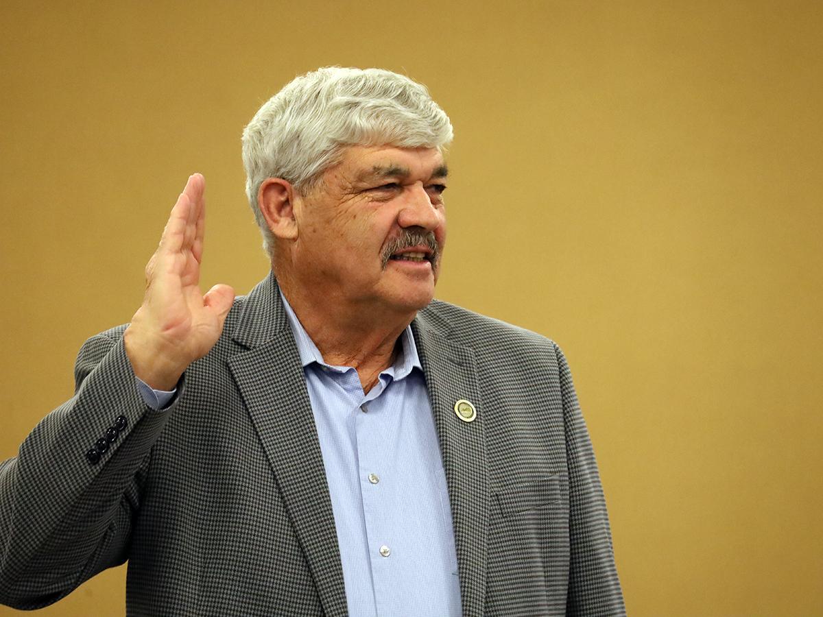 Rowan County Judge/Executive Harry Clark is sworn in as a KACo board member at the quarterly meeting.