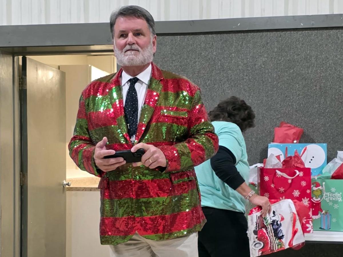 Marshall County Judge/Executive Kevin Spraggs was in the holiday spirit as he called out bingo numbers for senior citizens during a recent holiday event.