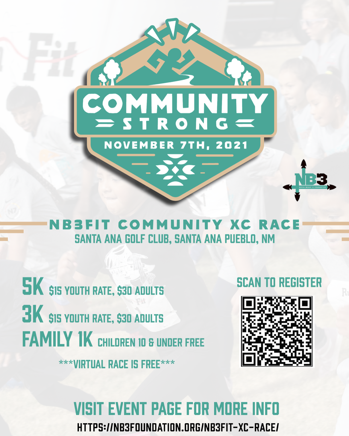 Lastly, we have the NB3FIT Community XC Race! We have an in-person event for local community members and a virtual event for our friends and relatives who can't make it. The virtual race is FREE and is a great family activity to do during NB3FIT Week!