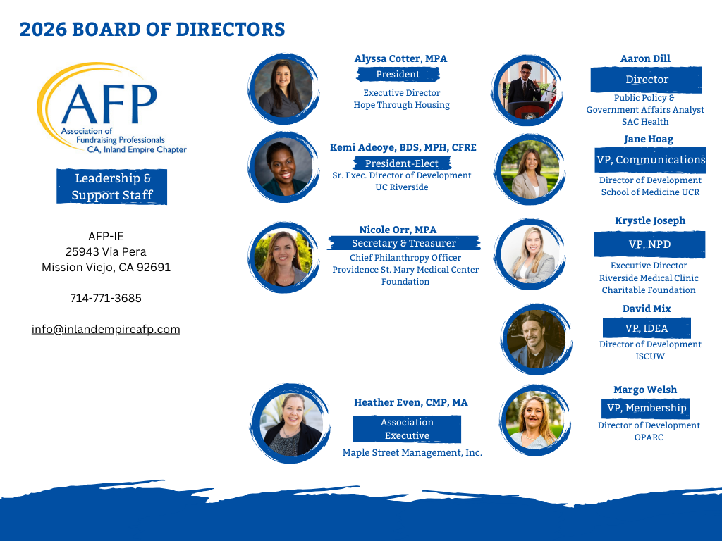 Happy New Year! As we step into 2026, the AFP Inland Empire Chapter is energized and excited for what’s ahead—and most importantly, for you.