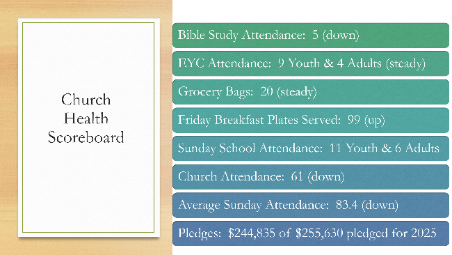 If you added someone to the "Prayers of the People" during our worship service please follow up with a phone call to the office and we will add them to next Sunday's prayer list. Also, let us know how the person you requested prayer for is doing.