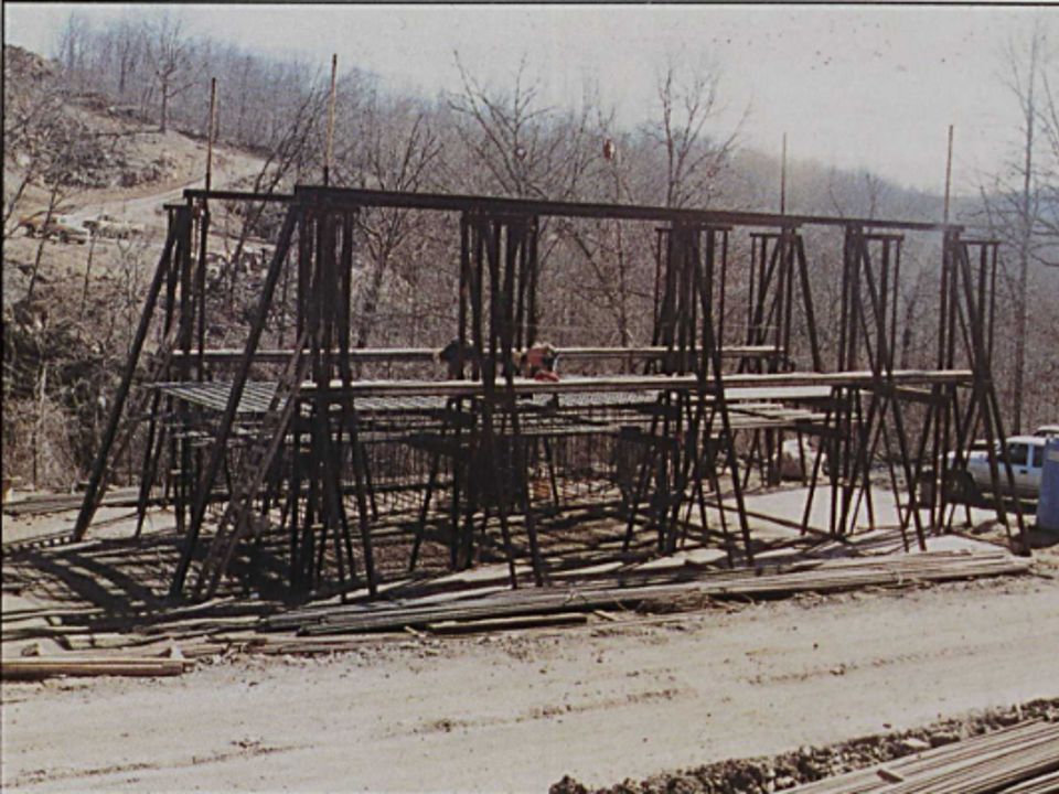 In 1996, Kiewit subsidiaries Gilbert Central and Gilbert Western project personnel designed an innovative resteel tying jig to efficiently tie 1,600,000 pounds of structural reinforcement for the Highway 71 project near Chester, Arkansas.